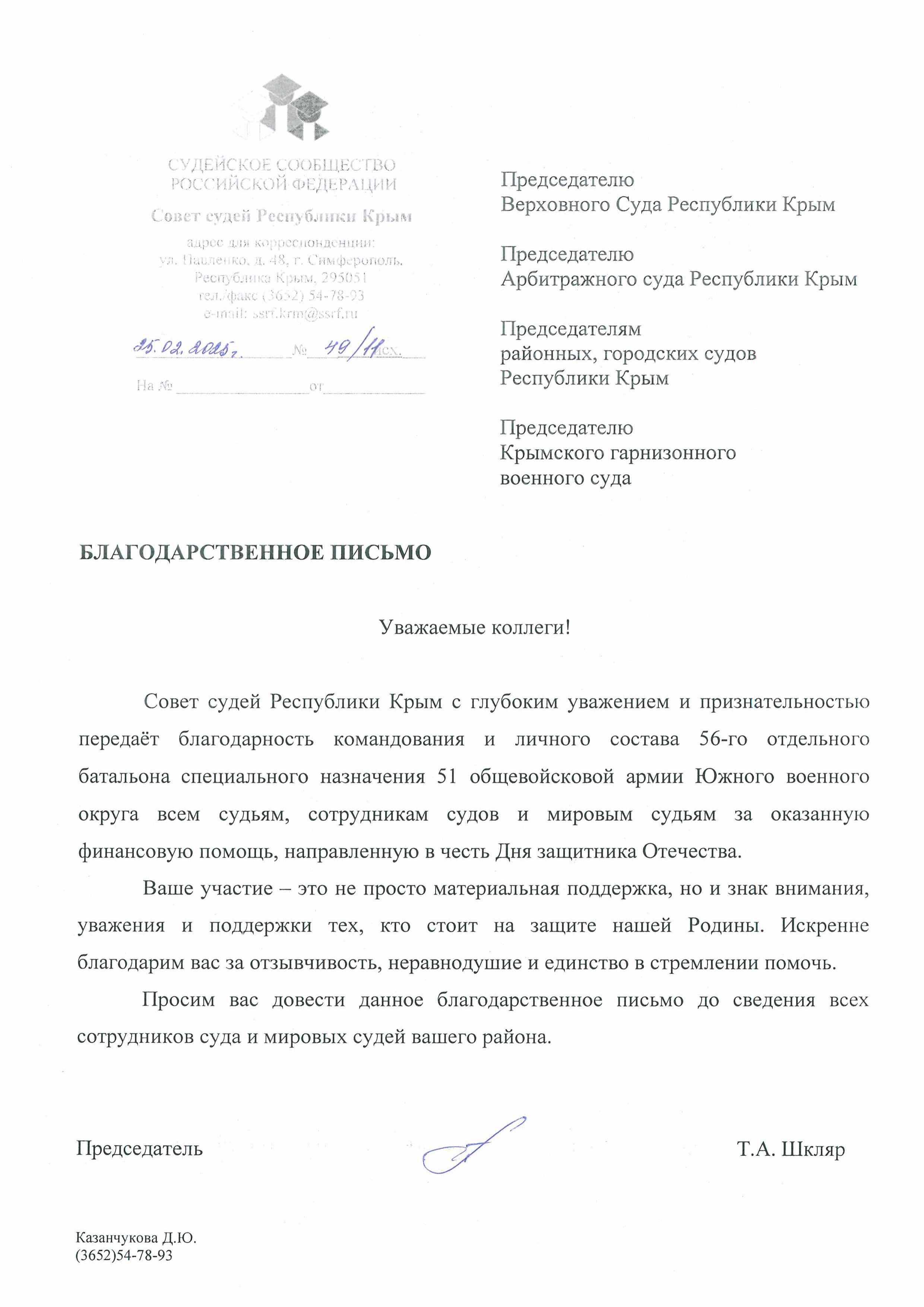 Благодарственное письмо