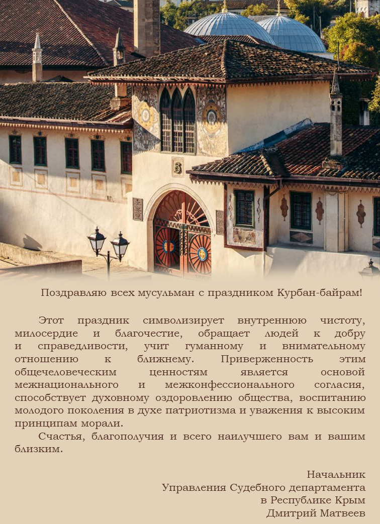 Поздравления с грядущими праздниками от начальника Управления Судебного департамента в Республике Крым Дмитрия Матвеева